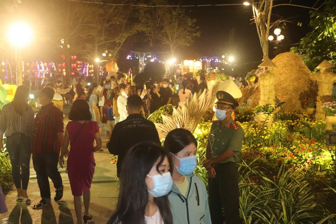 Tối 29 Tết (ngày 31-1) tại Đà Nẵng ghi nhận không khí mát mẻ, đôi lúc có mưa phùn nhưng vẫn không ngăn được dòng người đổ ra đường đón giao thừa. Vì tình hình dịch, đường hoa xuân Đà Nẵng khá vắng người tham quan.