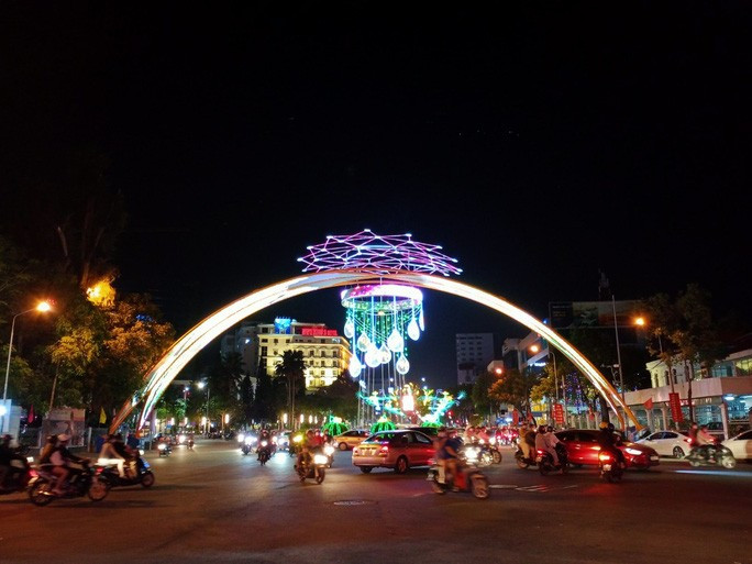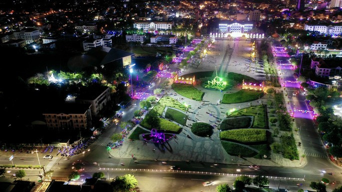 Ghi nhận từ khoảng 19 giờ, mọi tuyến đường dẫn vào khu vực Quảng trường Hùng Vương, phường 1 được xem là Quảng trường lớn nhất khu vực ĐBSCL có hàng ngàn người dân và các phương tiện từ các nơi đỗ về để vui chơi và chụp ảnh vì nơi đây có nhiều điểm trang trí rất đẹp.