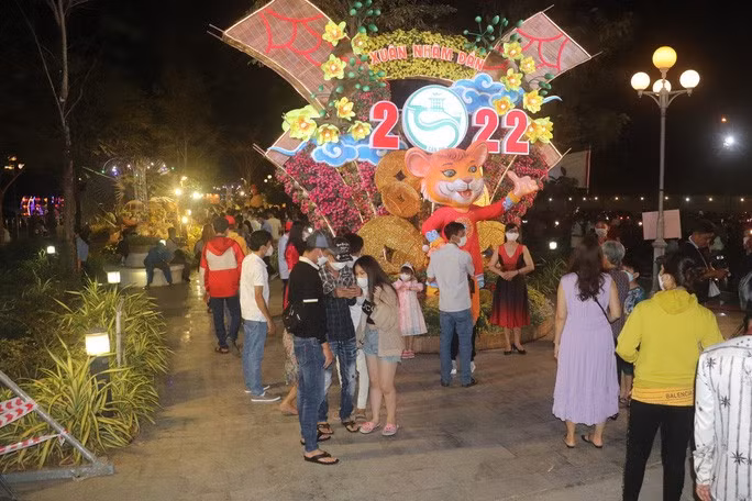 Tối cùng ngày, tại khu vực trung tâm TP Đà Nẵng, người dân đã bắt đầu đổ ra đường du xuân, chờ đón giao thừa năm mới Nhâm Dần 2022.