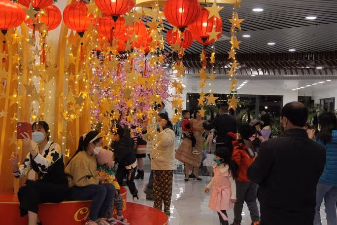 | Người dân hào hứng check-in bên các tiểu cảnh chào mừng năm mới |