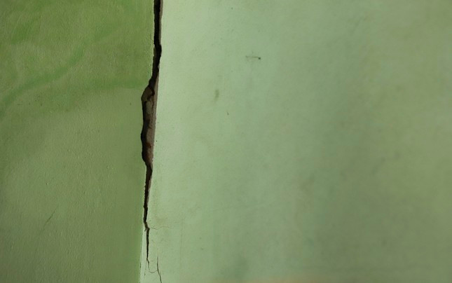| Nhà cửa của người dân bên đường bị nứt nẻ. Ảnh: Trương Định |