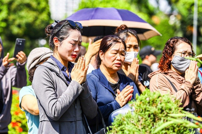 Chị Phạm Thị Khánh Huyền (phường Từ Liêm) không giấu được sự xúc động, nghẹn ngào tưởng nhớ tới cố Tổng Bí thư Nguyễn Phú Trọng Nhiều gia đình cùng đi thắp hương tưởng nhớ cố Tổng Bí thư Nguyễn Phú Trọng