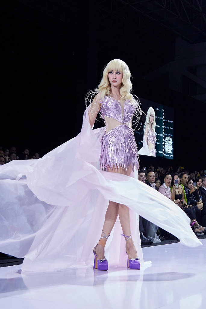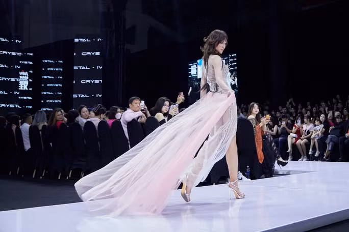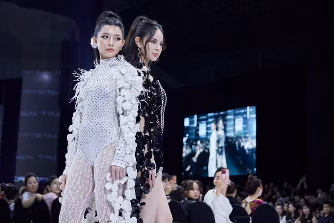 Với tông trắng bạc, đen và đôi khi có chút ánh tím hoặc hồng ngọt ngào, mỗi trang phục thuộc bộ sưu tập Crystal đều mang phong cách thuần khiết, tinh khôi và lấp lánh bắt mắt.
