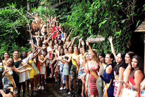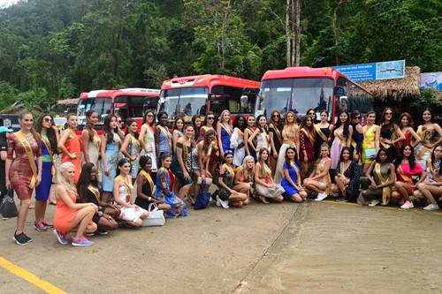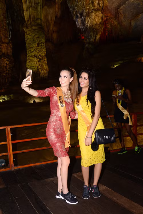 Mặc dù phải di chuyển với quãng đường hơn 40 km nhưng các người đẹp đều háo hức, không tỏ ra mệt mỏi. Khi xe chạy qua những cung đường đẹp hay những rặng núi đá xanh ngát, các người đẹp đều ồ lên đầy lạ lẫm. Đặc biệt, trước sự kỳ vĩ, lung linh của thạch nhũ động Thiên Đường, các chân dài vô cùng thích thú. Càng đi sâu vào trong động, các người đẹp càng kinh ngạc trước tạo hóa tài tình của thiên nhiên. Các người đẹp đến từ Philippines, Ấn Độ, Indonesia liên tục trầm trồ, thán phục với nhau và dùng điện thoại di động để chụp hình, ghi lại nét kỳ vĩ của hang động, của thạch nhũ hình thành từ hàng trăm triệu năm trước. Rời động Thiên Đường, đoàn cũng đã dừng chân ở điểm du lịch sông Chày - hang Tối và ngắm cảnh, chụp hình tại đó.
