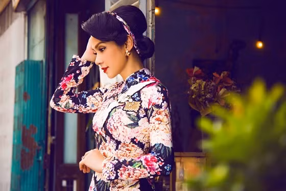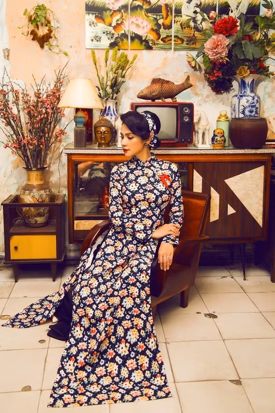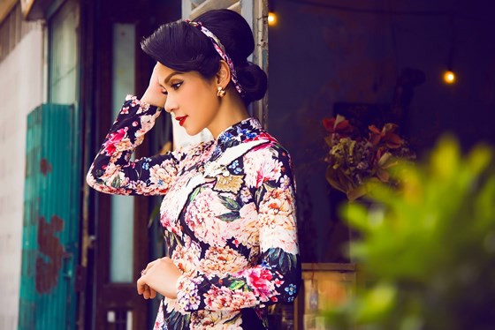 Nữ hoàng ảnh lịch một thời đốn tim người hâm mộ khi xuất hiện với hình ảnh đài các, sang trọng trong tà áo dài "Cô Bông Sài Gòn".