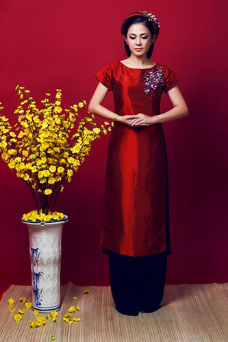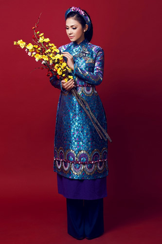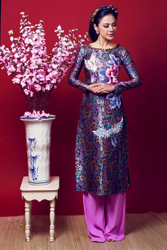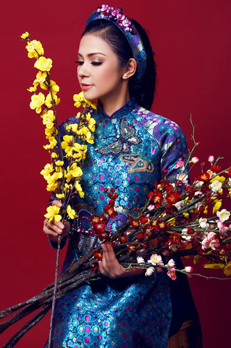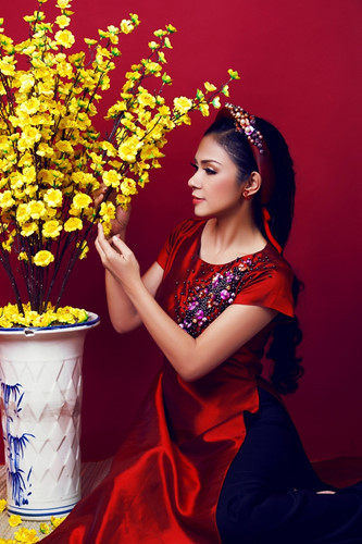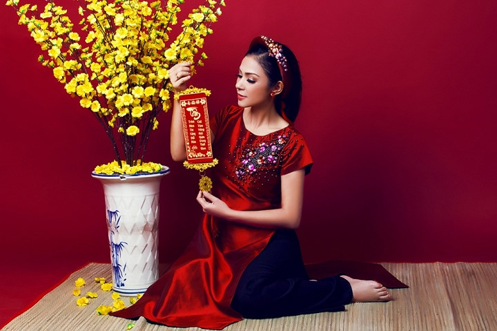 Diễn viên phim Người đẹp Tây Đô khiến nhiều người ghen tỵ với vẻ đẹp không tuổi khi diện trang phục áo dài đón Tết.