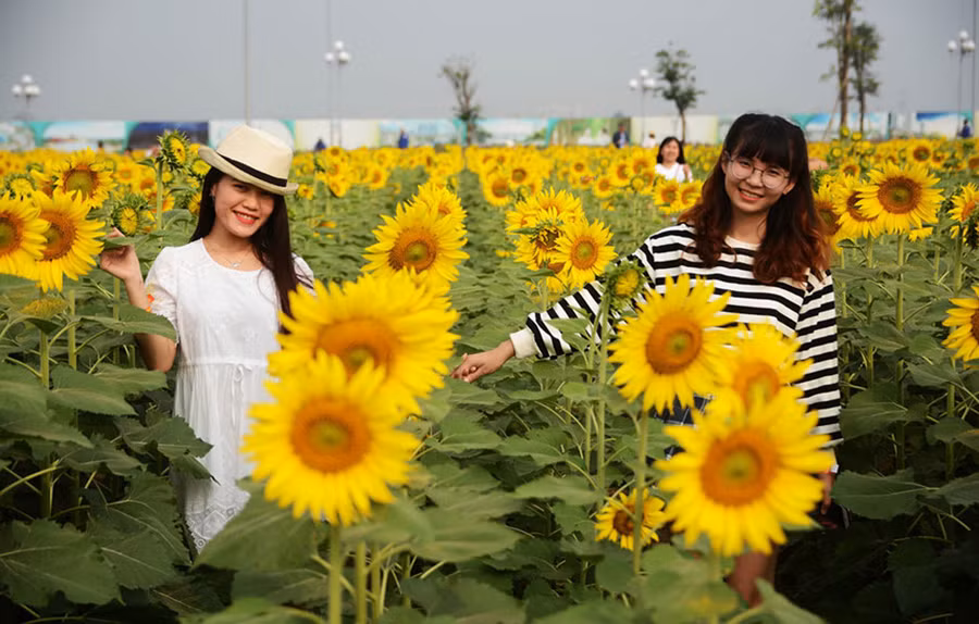 Đây được xem là vườn hoa hướng dương rộng nhất thành phố, với khoảng 600.000 cây hoa được trồng trên diện tích 18.000 m2 để phục vụ người dân tham quan, chụp ảnh.
