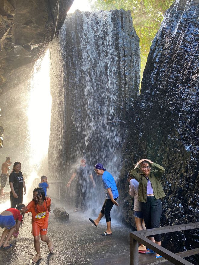 Điều chúng tôi ấn tượng nhất ở thác là làn nước xanh trong, từng đợt sóng trong hồ nhấp nhô tạo cảm giác êm dịu xua tan đi cái nóng. Phía dưới làn nước suối xanh trong là hàng trăm mỏm đá lớn nhỏ với đủ kích thước, hình thù. Phía sau những dòng nước đổ từ trên xuống là những hang đá bí ẩn, càng vào bên trong, chúng tôi cảm nhận rõ không khí mát lạnh, ánh sáng trở nên yếu dần phải dùng tới đèn pin. Những thanh âm kỳ lạ trong hang đá khiến từng bước chân của chúng tôi càng trở nên hồi hộp không khác gì đang khám phá một hang động kỳ bí.