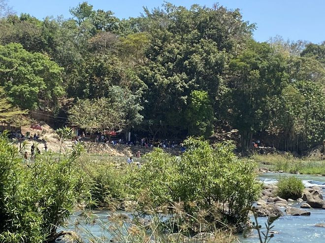 Tắm suối xong đã 13 giờ chiều, chúng tôi tìm đến bãi đá trống được quy định để nướng đồ ăn, thực phẩm. Thông Minh Vương (23 tuổi, ngụ tại đường Nguyễn Thị Thập, quận 7, TP.HCM) cho biết: “Sau một buổi với nhiều hoạt động khiến cơ thể khá mất sức thì việc nạp lại năng lượng bằng đồ nướng thì còn gì bằng. Đắm mình trong dòng nước mát khiến mọi áp lực trong công việc tại nơi thành phố như tan biến. Đây là cách lấy lại năng lượng làm việc hiệu quả cho những người trẻ như mình”.