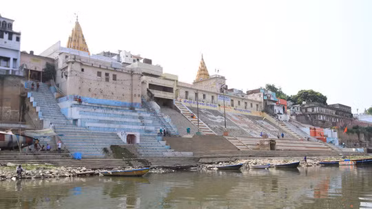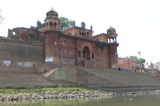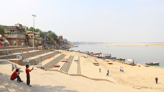 Sau hơn mười lăm phút len lỏi trong những hẻm ô nhiễm, sông Hằng huyền thoại, tôi mong ước đến bao lâu đã hiện ra trước mặt. Sông rộng mênh mông. Từ bờ bên này không thấy được bờ bên kia, uốn lượn chảy qua những đụn cát vàng thấp thoáng. Hai bên phải trái, 87 Ghat, được xây dựng từ thế kỷ XVII, nhỏ to thấp thoáng bên các đền đài cao thấp. Ghat là những cầu thang dẫn xuống sông, là nơi phục vụ nhu cầu tắm giặt của người dân hoặc được dùng làm lễ hỏa táng.