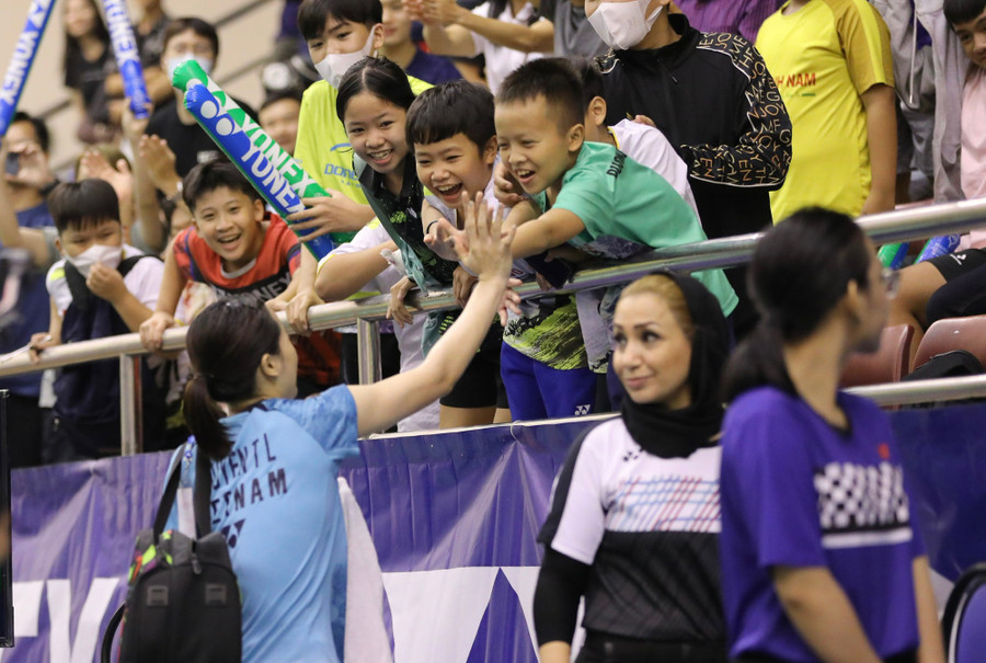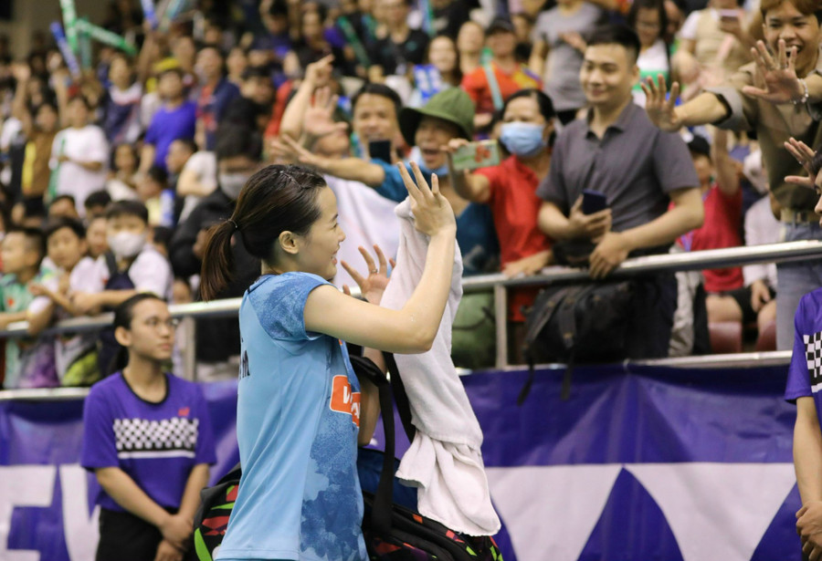 | Người hâm mộ đến chật kín Nhà thi đấu Nguyễn Du cổ vũ cho Nguyễn Thùy Linh đấu chung kết với tay vợt Nhật Bản. Ảnh: ĐỘC LẬP |