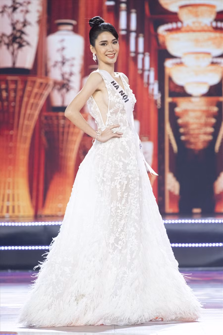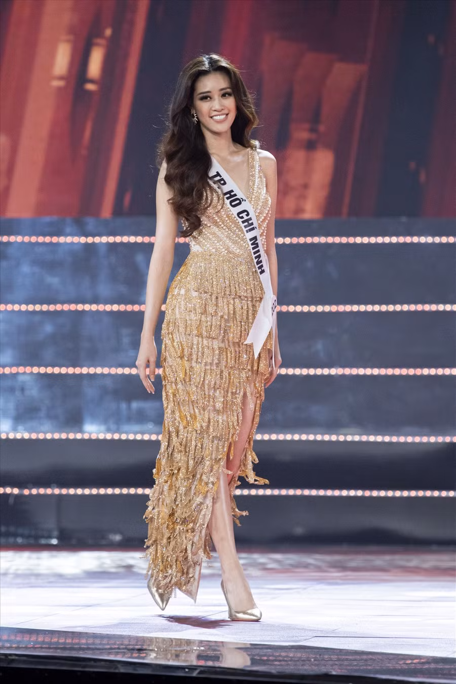 | Đây là lần cuối cô sải bước trên sân khấu của Hoa hậu Hoàn vũ Việt Nam với tư cách là đương kim Hoa hậu Hoàn vũ Việt Nam. Ảnh: MUVN. |