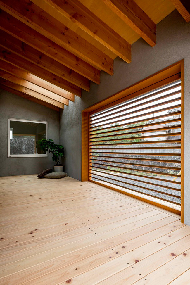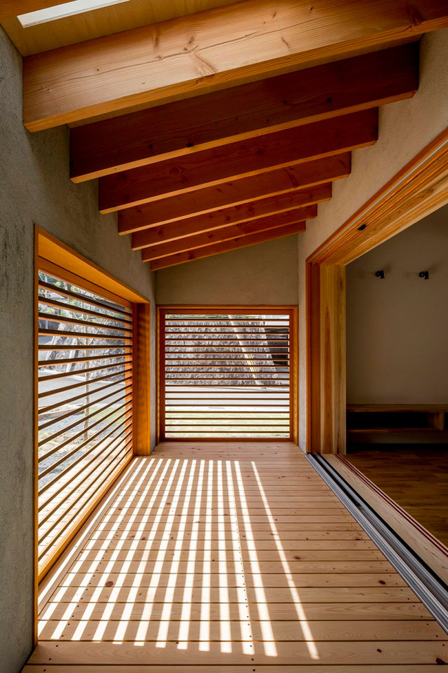 Vách ngăn lam gỗ giúp ngôi nhà thêm thoáng mát.