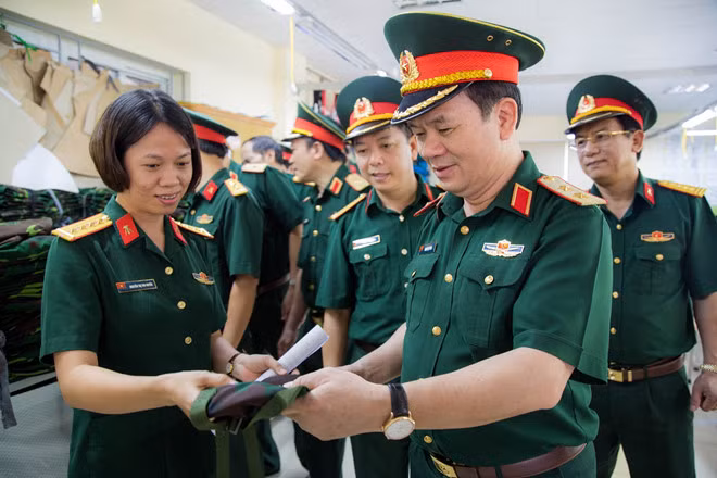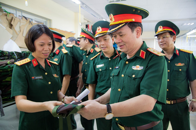 Trung tướng Khuất Việt Dũng, Chính ủy Tổng cục CNQP kiểm tra sản phẩm do Nhà máy Z-76 sản xuất, tháng 5.2018. Ảnh: TCCNQP