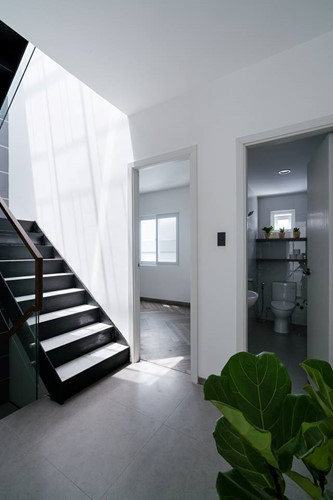 Không gian nhà mới sau cải tạo được mở rộng và tràn ngập ánh sáng, nắng, gió từ cầu thang.
