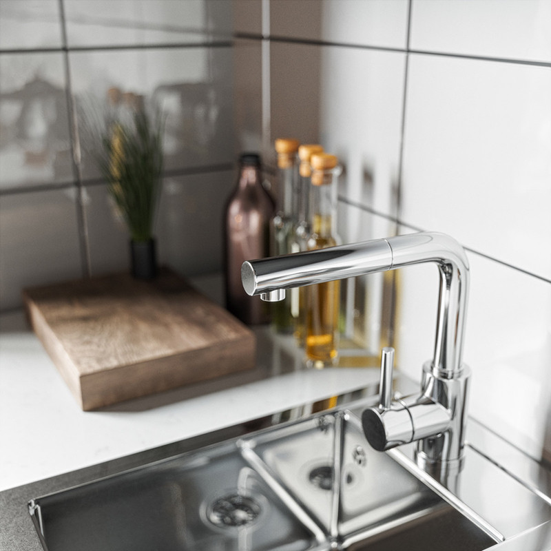 Vòi và bồn rửa bằng inox dễ làm sạch.