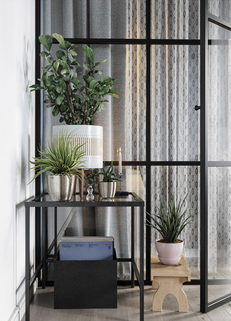 Một góc vườn nhỏ nằm ngay dưới giếng trời.