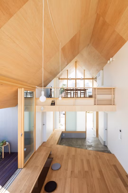 Toàn bộ nội thất, sàn, trần trong ngôi nhà đều có màu gỗ sáng. Các đồ đạc trong nhà đều được đa năng và đơn giản hóa nhất có thể.