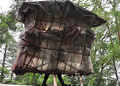 Theo Orange, Liu Lingchao ở TP. Liễu Châu, thuộc tỉnh Quảng Tây, mang theo nhà của mình mỗi khi đi lại. “Ngôi nhà di động” của ông là một khung tre bọc nhựa có trọng lượng khoảng 60 kg.