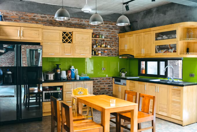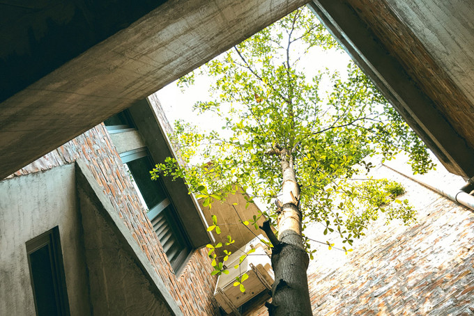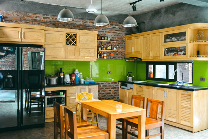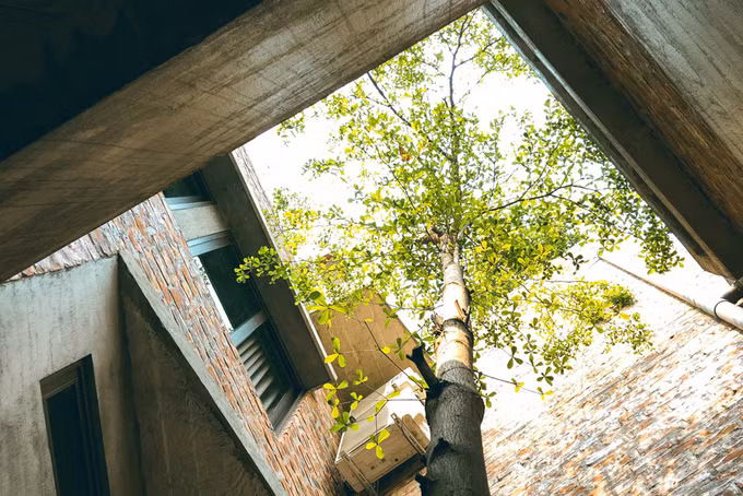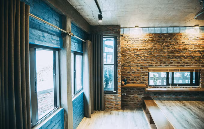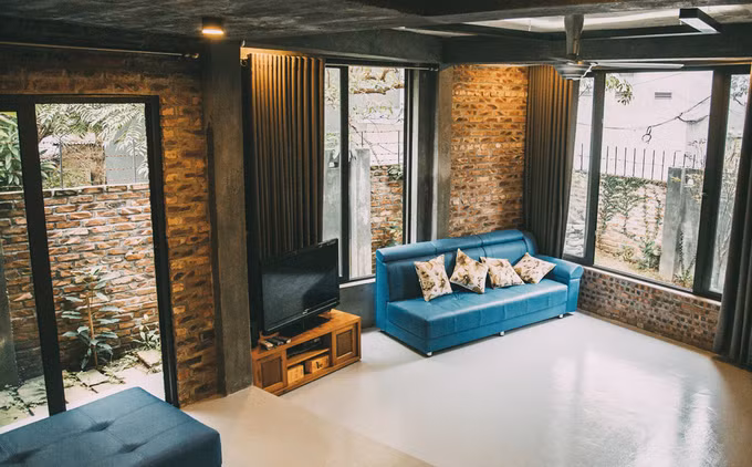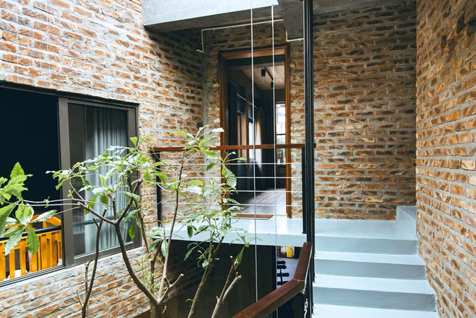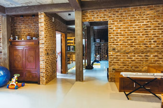 Là kiến trúc sư, gia chủ muốn thiết kế một không gian sống cá tính, độc đáo. Yêu thích chất liệu tự nhiên, anh Thưởng quyết định, phần lớn các mảng tường trong nhà để nguyên gạch mộc, không sơn trát.