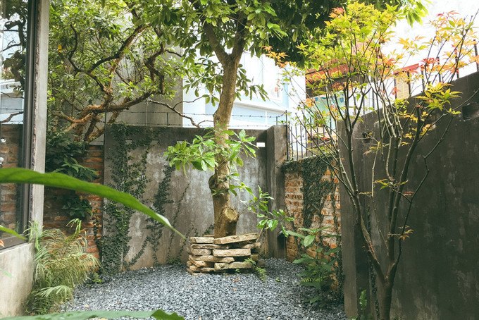 Anh Thưởng là người yêu thích thiên nhiên, cây cối nên bố trí rất nhiều cây trong nhà và ngoài vườn, giúp không gian thô mộc trở nên mềm mại hơn.