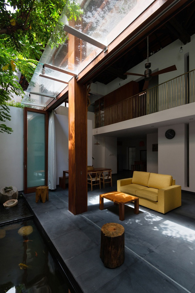 Một hồ nước nhỏ và tiểu cảnh xanh mướt giúp cân bằng không khí trong nhà.