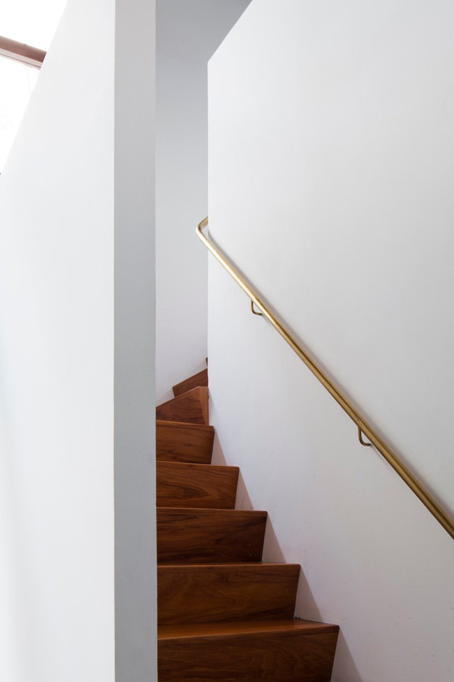 Cầu thang gỗ dẫn lên tầng 2.