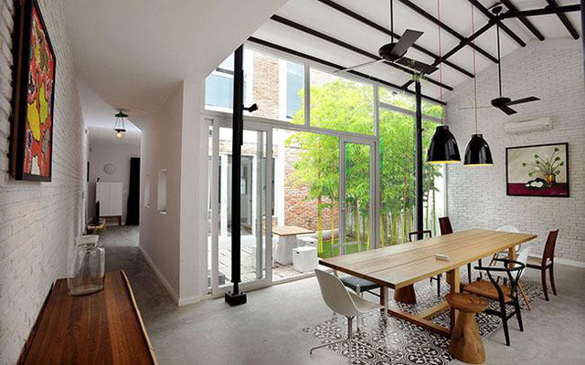 Là 1 căn nhà ống dài và sâu, kiến trúc sư đã thiết kế ở vị trí giữa nhà có những khoảng sân nhỏ để cung cấp ánh sáng và thông gió tự nhiên.