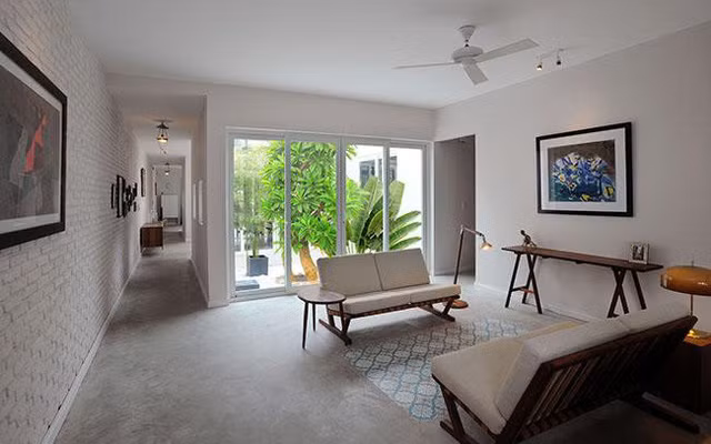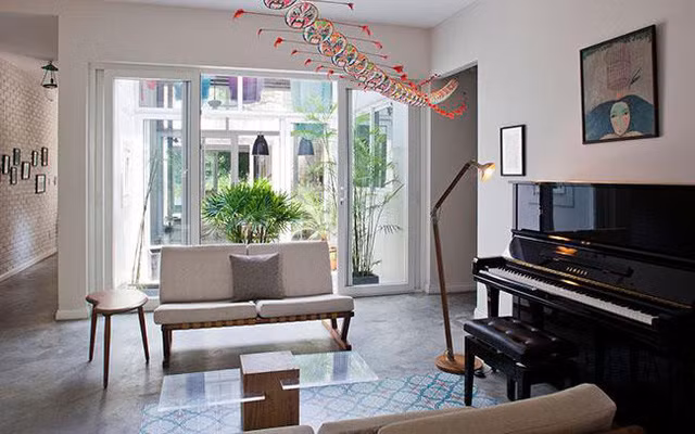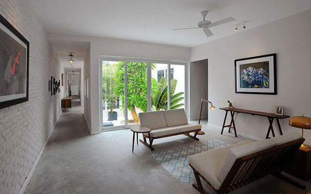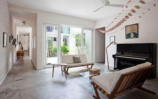 Phòng khách sáng sủa nhờ khoảng sân sau ngập trong nắng, gió.