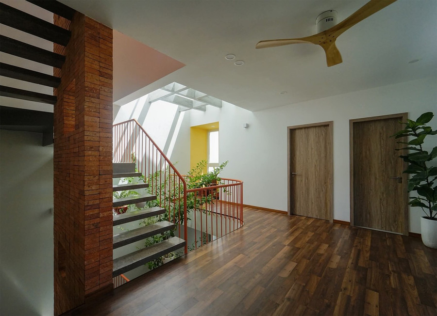 Các mảng xanh được cài cắm tinh tế ở giếng trời, ban công và hành lang giúp không khí trong lành và nhẹ nhõm hơn.