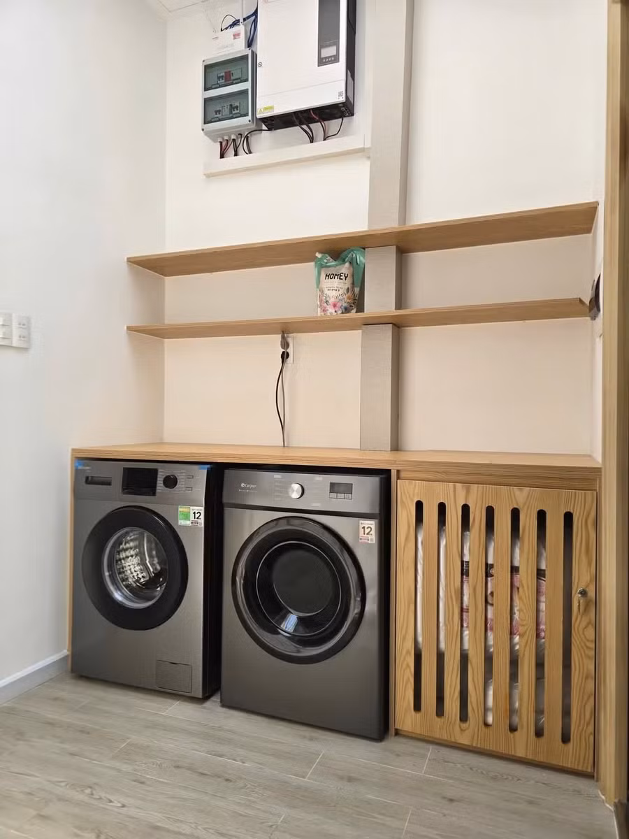 Diện tích đất 85m², nhưng gia chủ dành đến 20m2 để làm sân vườn sau, nhưng công năng đầy đủ bao gồm 3 phòng ngủ, bếp + khách gọn gàng; khu giặt sấy riêng, khu bếp có cửa sổ nhìn ra sân vườn cực kỳ thoáng mát.
