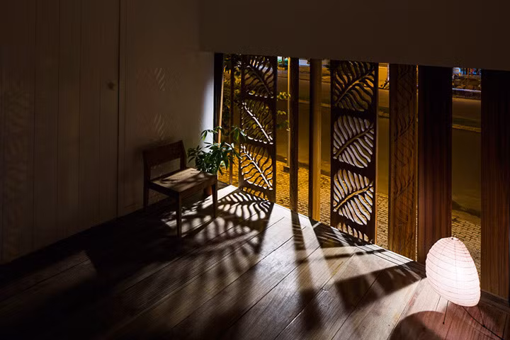 Bức tường gỗ với những hoạ tiết khác lạ, từ đây chủ nhà có thể ngắm nhìn quang cảnh bên ngoài.