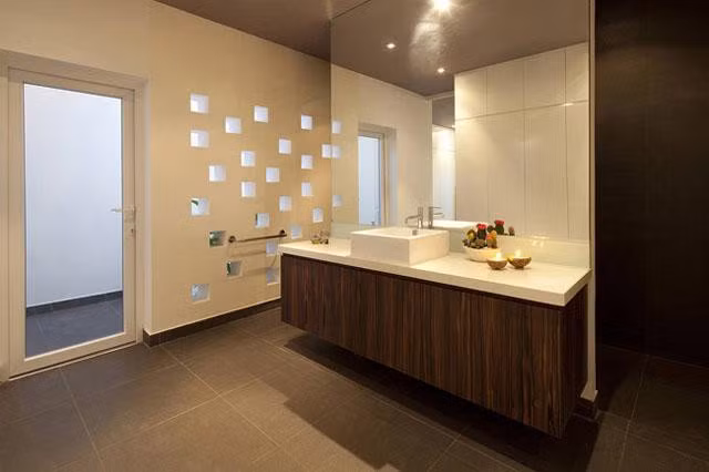 Xét về tổng quan, ngôi nhà có lối thiết kế khá đơn giản, các yếu tố kiến trúc không quá cầu kì, vật liệu là bê tông, gạch, gạch men, mái tôn… Sự sang trọng và hiện đại được dồn lại, tập trung vào nội thất.