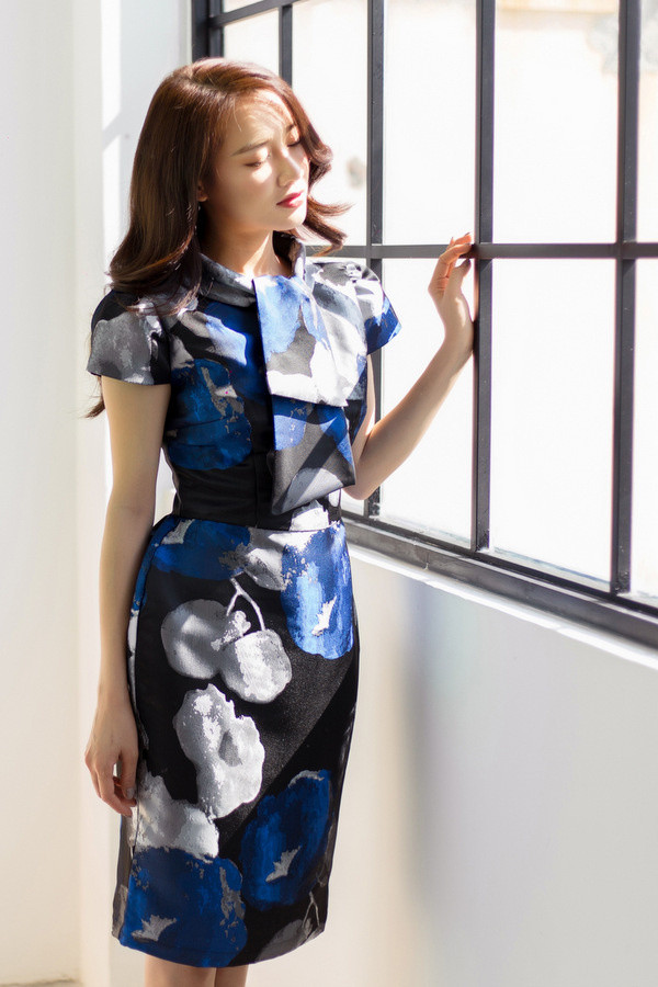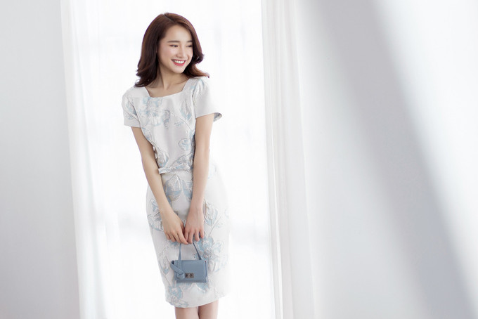 Nhã Phương thể hiện hình ảnh người phụ nữ công sở hiện đại trong những váy dáng đồng hồ cát hoặc xòe nhẹ.