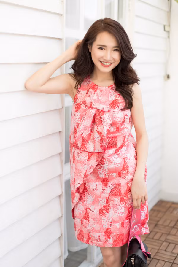 Diễn viên đẹp nhẹ nhàng trong nhiều kiểu váy phom rộng, hoặc chít eo nhẹ.