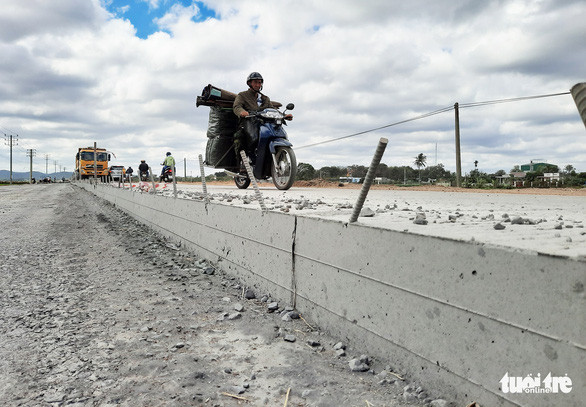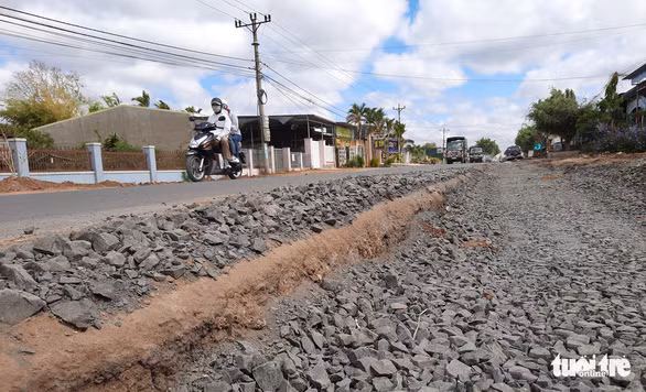 Đoạn đường dài 6km, tổng vốn 60 tỉ đồng nhưng thi công rất thiếu an toàn - Ảnh: TR.TÂN