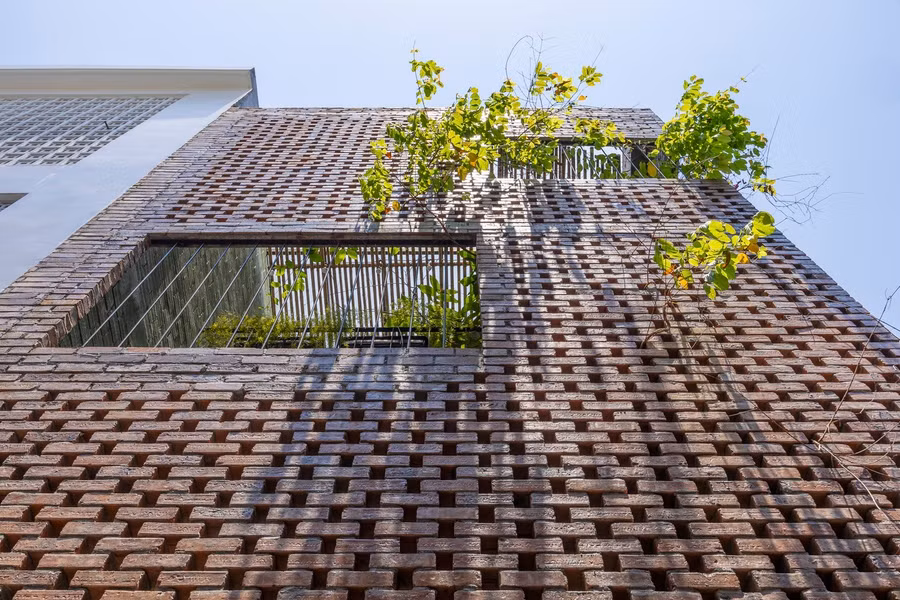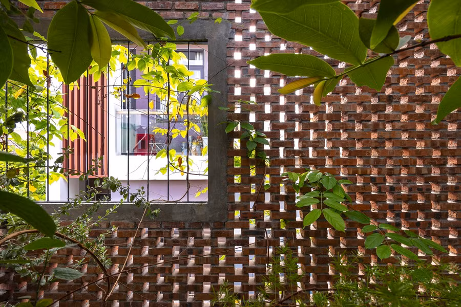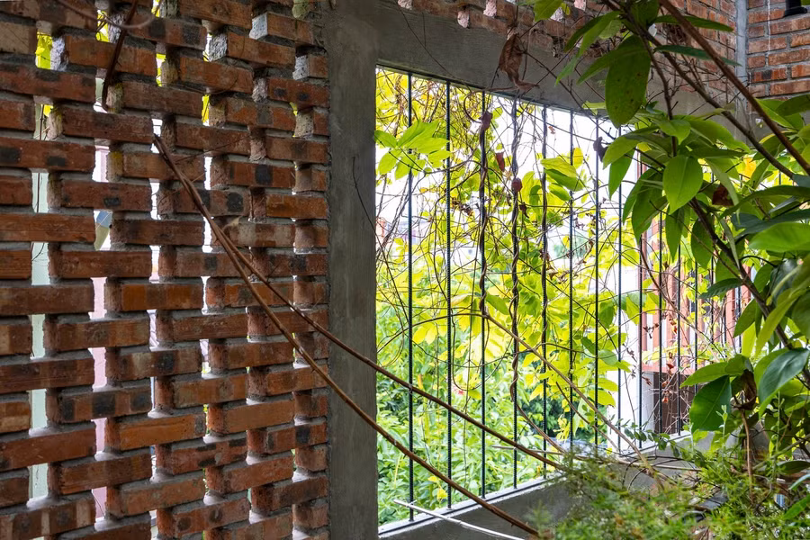 Kiến trúc sư sử dụng gạch nung có khoảng trống cho ngôi nhà, điều này giống như tạo ra các cửa chớp để thông gió. Phương pháp xây dựng này cho phép những làn gió mát từ ngõ tràn vào nhà.