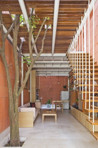 Gia chủ thậm chí còn trồng luôn cây xanh xuyên tầng trong nhà. Cây xanh vẫn được chủ nhà chăm bón với hy vọng làm sạch không gian sống của cả gia đình.