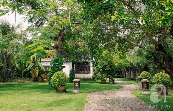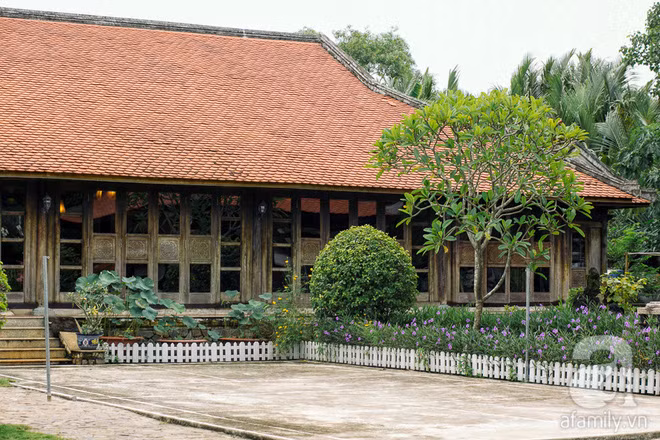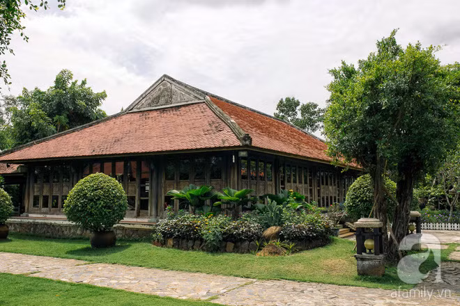 Ngôi nhà vườn được xây dựng theo phong cách truyền thống của người Việt, những bậc thềm gạch, mái gỗ như tạc nét cổ xưa khiến lòng người say đắm giữa lòng Sài Gòn phồn hoa.