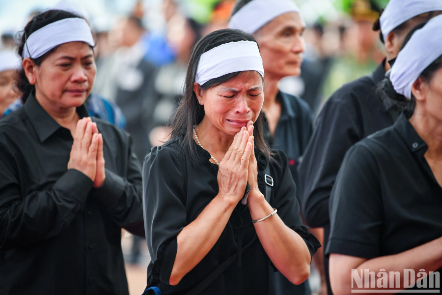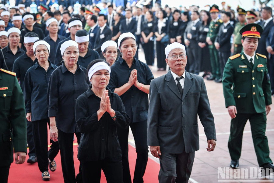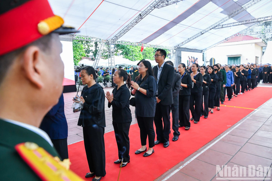 | Tại khu vực Nhà văn hóa thôn, hàng nghìn người cũng có mặt đợi tới lượt viếng. |