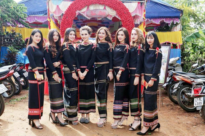 Bức ảnh chụp các thiếu nữ mặc trang phục dân tộc Ê Đê xinh đẹp trong đám cưới bạn thân tại buôn Jung, huyện Cư Kuin hiện trở thành tâm điểm chú ý trên mạng.