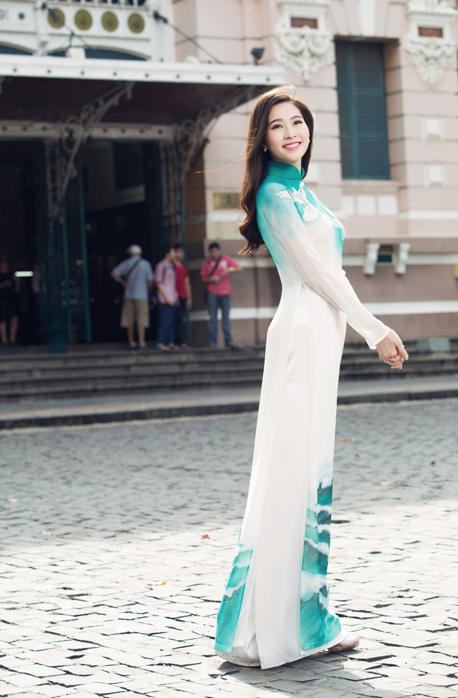 Không sở hữu đường cong gợi cảm, vẻ đẹp sắc sảo, ưu điểm của Thu Thảo là sự hài hòa trên từng đường nét. Cô luôn khéo khoe thế mạnh của mình bằng cách chọn trang phục thướt tha.