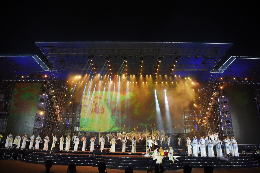 | Các thí sinh trong phần thi trang phục dân tộc. |