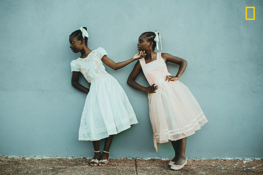 Giải nhì hạng mục Con người: “Em sẽ nâng chị lên” - Tati Itat. Tác giả có cơ hội làm quen với những gia đình nhập cư và tị nạn từ Haiti ở Brazil, trong đó có cặp chị em song sinh Leïda and Laëlle. Bức ảnh ghi lại khoảnh khắc Laëlle hướng dẫn Leïda cách tạo dáng giống mình trong trò chơi bắt chước hành động của nhau.