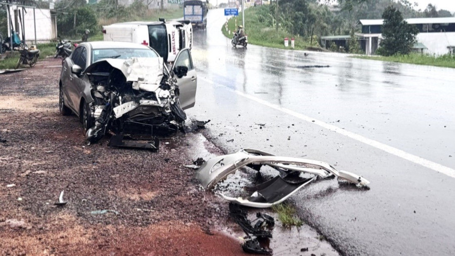 Khi xe gần đến Trạm thu phí Đắk Song, bất ngờ va chạm với ô tô con biển số 47A-160.70 do một nữ tài xế điều khiển.
