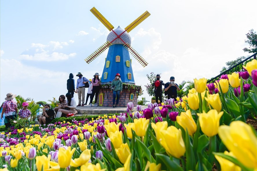 | 15.000 bông tulip to, nhiều màu sắc lạ tạo nên điểm check-in được yêu thích nhất tại núi Bà Tết này. |