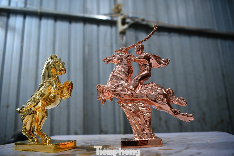 Một xưởng chế tác tại Hà Nội tất bật chuẩn bị cho Tết Bính Ngọ với loạt linh vật ngựa độc đáo. Bên cạnh chất liệu đồng hay sơn mài, những mẫu mạ vàng 24K đắt giá đang thu hút sự chú ý của nhiều người.
