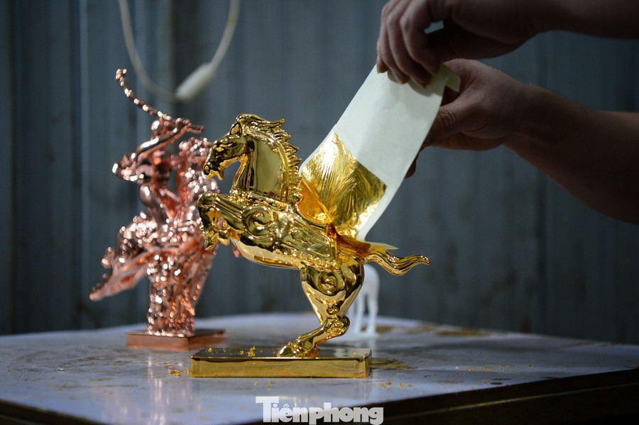 Khi tác phẩm đã định hình, sản phẩm được bàn giao cho thợ lành nghề xử lý bề mặt và thực hiện các công đoạn phủ, mạ hoặc dát vàng 24K.