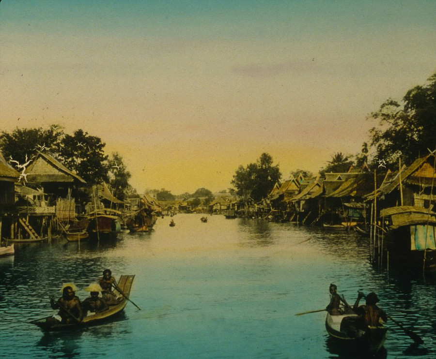 Cuộc sống yên bình bên dòng sông. Bức ảnh được chụp trong chuyến đi vòng quanh thế giới của Jackson. Hiện chưa xác định rõ đây là địa điểm nào.