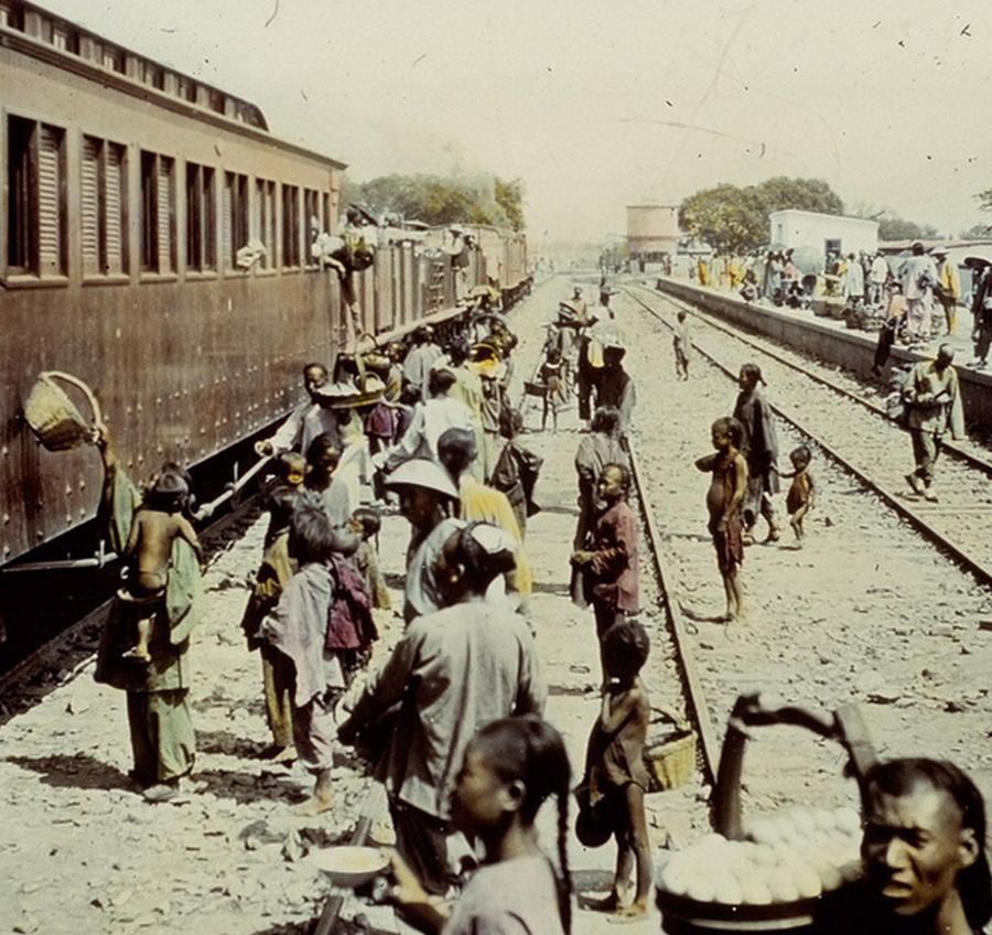Người dân đứng tập trung cạnh một đoàn tàu ở châu Á.